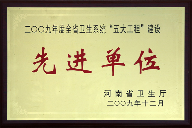 二〇〇九年度全省卫生系统五大工程建设先进单位