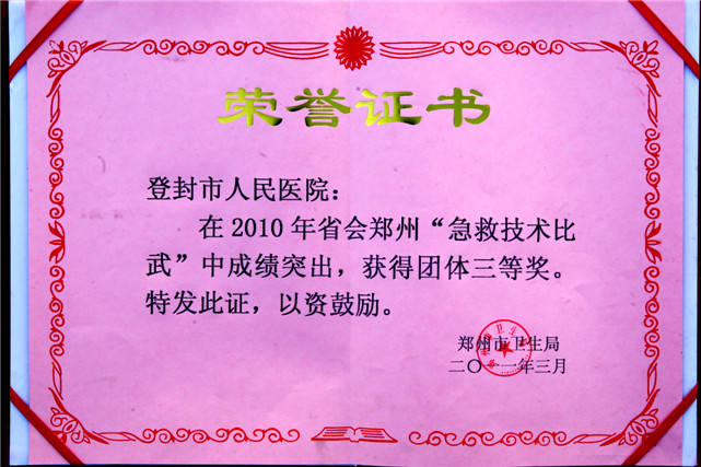 2010年郑州"急救技术比武"团体三等奖